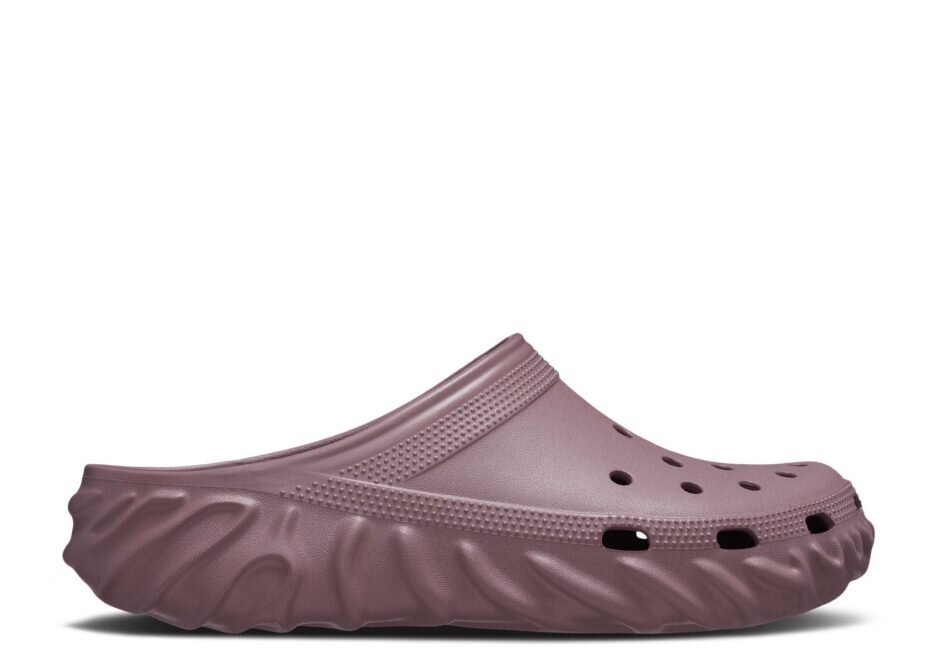 The Salehe Bembury x Crocs Saru Clog ‘Mochi’ has a purple foam upper with vent ports to enhance breathability. The Crocs and Salehe logos appear on the contoured footbed, while the outsole has a series of molded ridges in a fingerprint design.