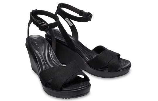 (WMNS) Crocs Leigh II Cross Strap Ankle Wedge Sandals ‘Black’ 204950-060